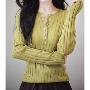 大喜|克洛伊针织衫|支绵混纺条纹对缝圆领女2025秋季新款套头上衣
