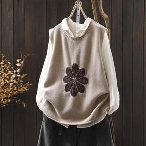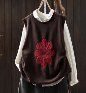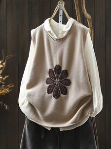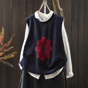 秋季新款 叠穿小马甲花朵棉线针织独特漂亮百搭无袖背心3005