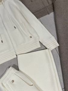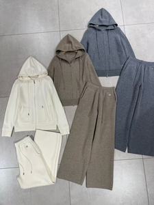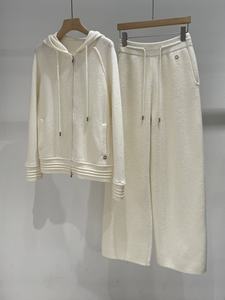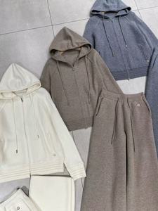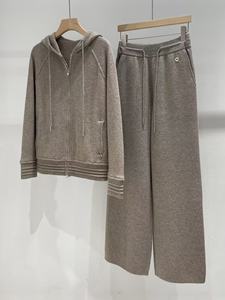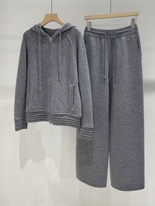 2025早秋新款羊绒抽绳连帽外套开衫+直筒阔腿裤时尚简约保暖舒适