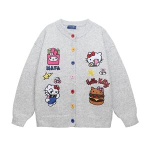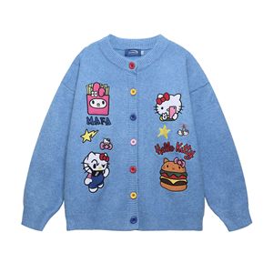 美式复古可爱卡通刺绣针织开衫外套男女2025秋冬新款情侣百搭毛衣