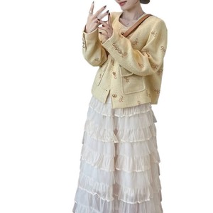 【月华轻绡】蝴蝶秀珠短外套女秋季高级感上衣+蛋糕裙套装两件套