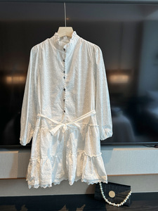 25秋季新款女士气质减龄宽松系带重工蕾丝镂空连衣裙短裙0830j15