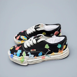 三原mmy休闲鞋男女同款涂鸦卡通动物贴纸帆布厚底增高 运动溶解鞋