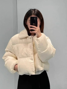高品质MIU家秋冬新款提花满印羽绒服小众设计暗纹字母立领羽绒服