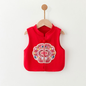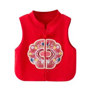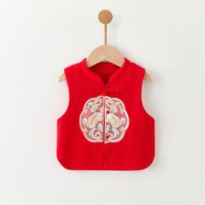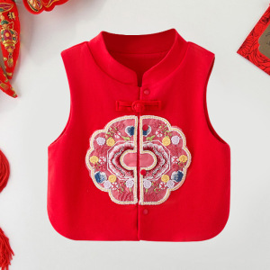 儿童唐装刺绣马甲夏季新款周岁服中国风衣服红色宝宝外穿生日礼服