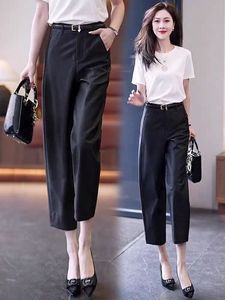 春夏薄款新款时尚高腰烟管裤哈伦裤女百搭显瘦休闲裤小直筒九分裤