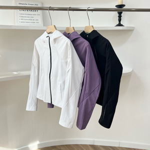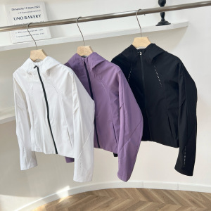 0830x6~早秋户外运动简约防水防风反光印花女士短款连帽夹克外套