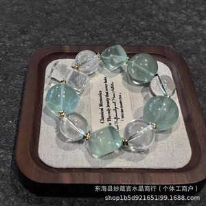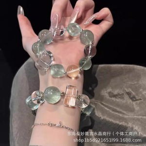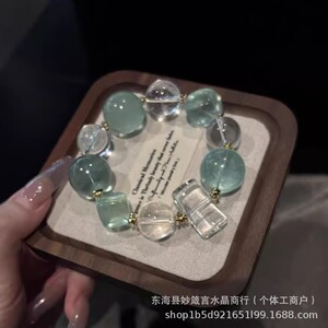 招财转运白水晶手链绿萤石单圈男女款手串送闺蜜女友礼物显白手链