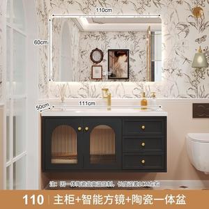 110黑色智能镜柜含配件+陶瓷盆出口品质