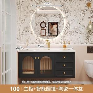 橡木复古风浴室柜法式陶瓷一体盆卫生间洗手盆柜组合洗漱台一体