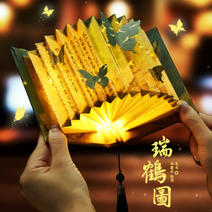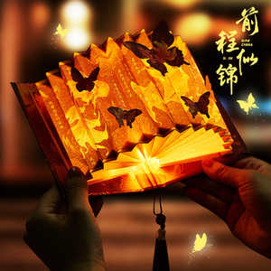 洛神赋书灯折叠扇形书灯古风LED氛围感小夜灯感中秋节DIY手工制作