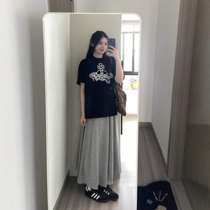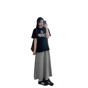 套装女2025新款韩版宽松简约短袖T恤上衣+高腰半身裙两件套秋季