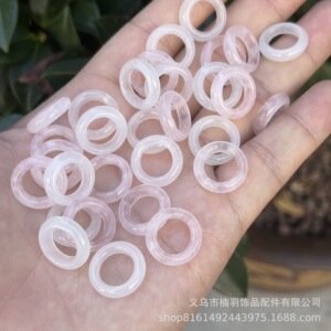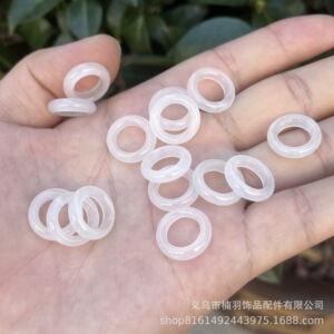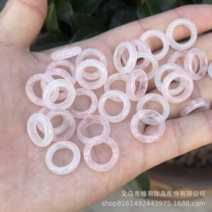 批发 天然白玉髓粉水晶跑环圆环指环扣子手链项链配饰diy饰品配件