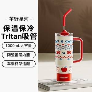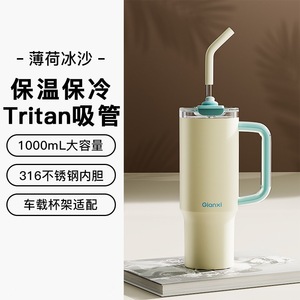 高颜值保冷冰霸杯新款便携随行车载杯316不锈钢内胆吸管保温杯