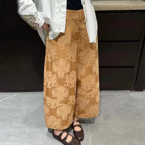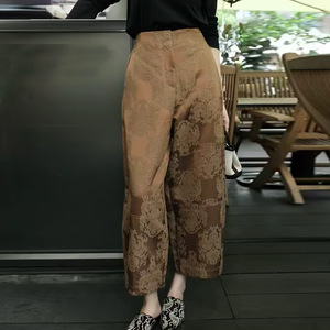 品质保证气质中年女新款新中式提花大码百搭裤宽松哈伦裤休闲长裤