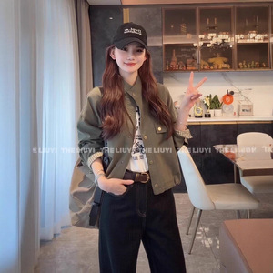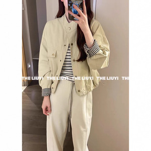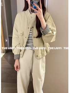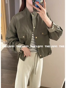 新款撞色格子宽松短款2025秋季夹克风衣外套58053