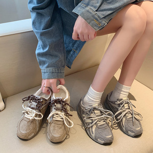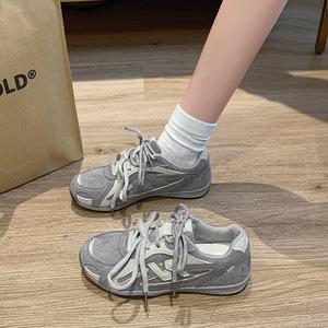 复古德训鞋女2025新款圆头拼色休闲鞋阿甘鞋系带防滑运动鞋