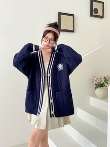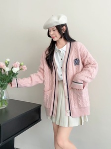 学院风麻花毛衣外套女秋冬2025新款日系百搭慵懒宽松减龄针织开衫