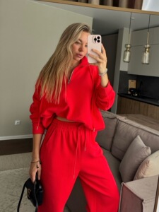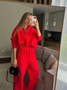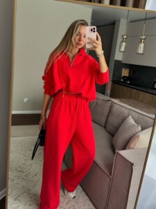 美式复古时尚套装女冬季新款宽松纯色polo领卫衣阔腿裤两件套潮