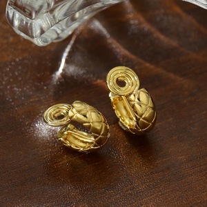 刘亦菲同款玫瑰的故事高级感菱格纹小耳圈蚊香盘耳夹无耳洞女金属