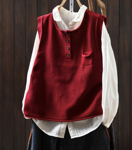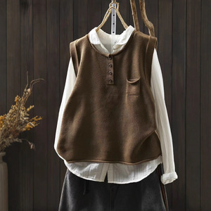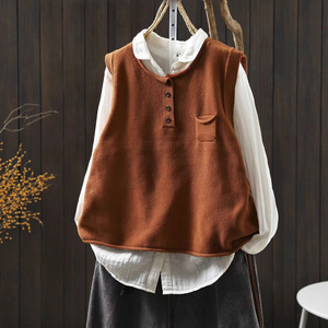 秋季新款 棉线针织百搭无袖套头别致叠穿小马甲7009