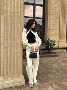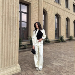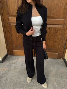 速卖通热销2025早秋新款简约纯色拉链开衫上衣宽松直筒长裤套装女