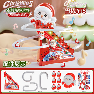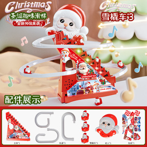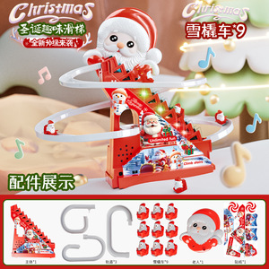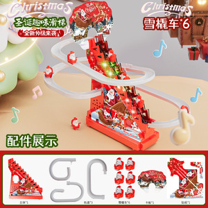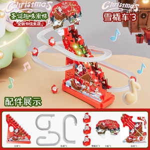跨境圣诞老人益智儿童益智趣味玩具圣诞节礼物爬楼梯灯光音乐滑梯