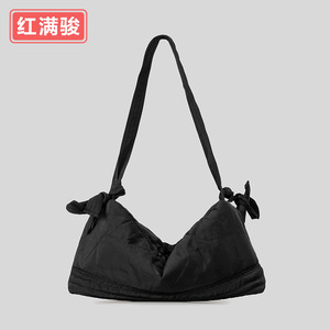 日系轻便纯色蝴蝶结单肩斜挎包羽绒棉手提包女大容量手提包工厂