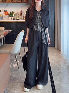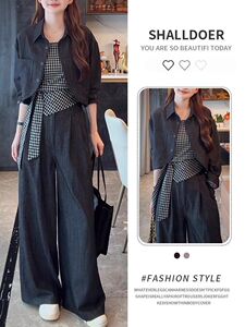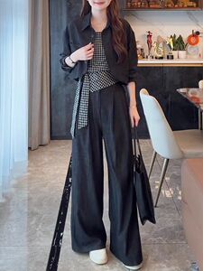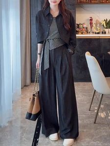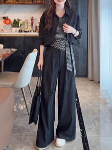 感巨好看2025秋装套装韩系时尚气质短款外套格子吊带阔腿裤三件套