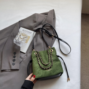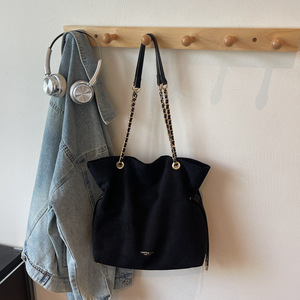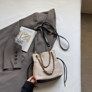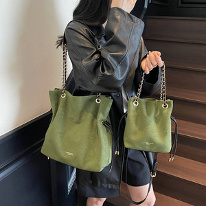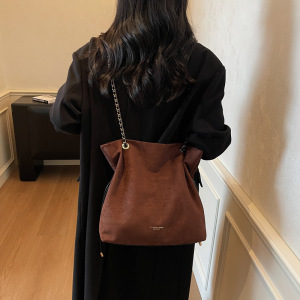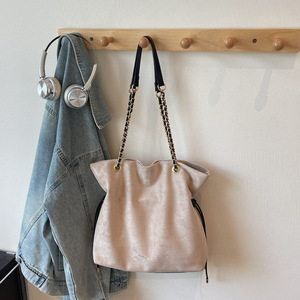 跨境新款复古单肩包都市简约大容量手提包时尚链条抽绳斜挎包批发