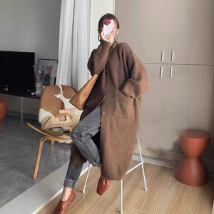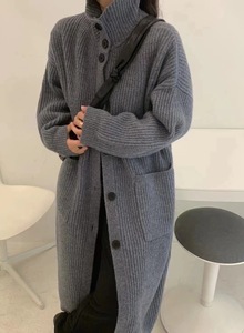 厚实软糯慵懒风粗针毛衣开衫女设计感小众高领中长款针织大外套