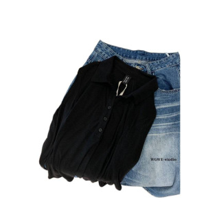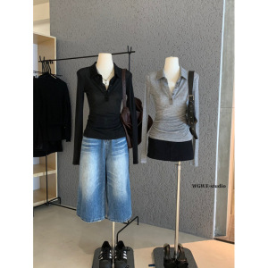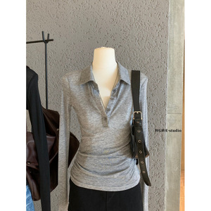 塞纳WGWE6985polo领针织长袖T恤翻领正肩打底衫设计感小众长袖T恤