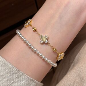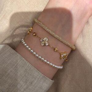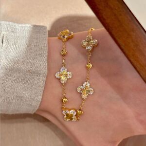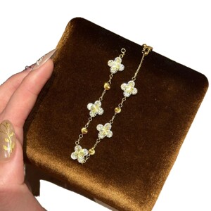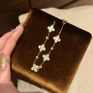 「落日熔金」金色碎碎冰镭射四叶花手链复古轻奢气质贵气叠戴手饰