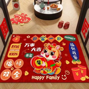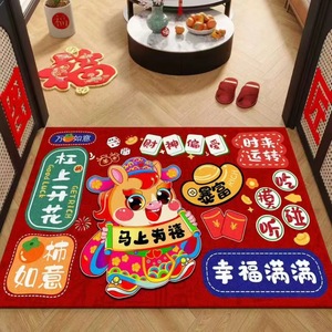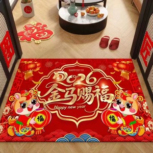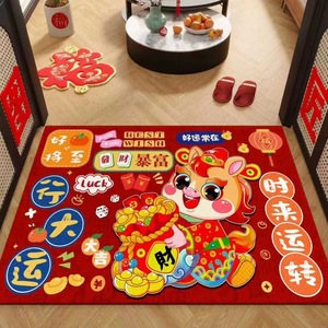 2026马年水晶绒地垫家用入户门垫门厅装饰地毯红色喜庆玄关地垫