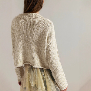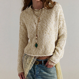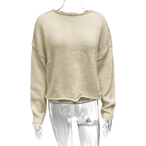 Y00274TM亚马逊欧美女装2025秋季新款净色长袖圆领外搭上衣毛衣女