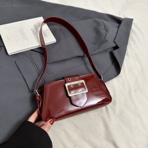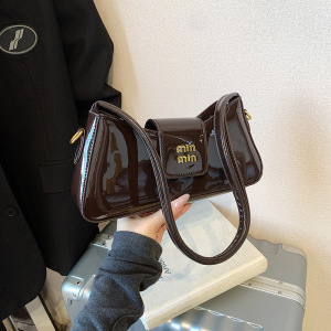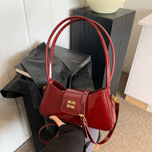 跨境爆款代发油蜡皮腋下包春季新款时尚漆皮单肩包潮百搭手提女包