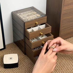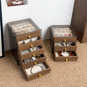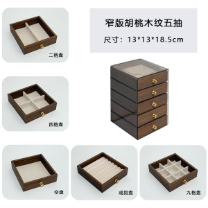 窄板胡桃木纹五层+三抽首饰盒