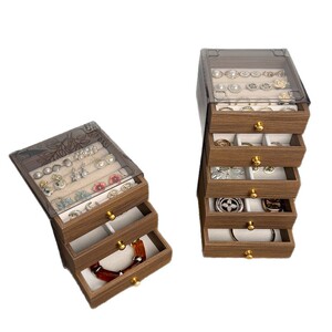 高档精致饰品收纳盒多层胡桃木纹戒指耳钉耳环耳饰收纳手饰首饰盒