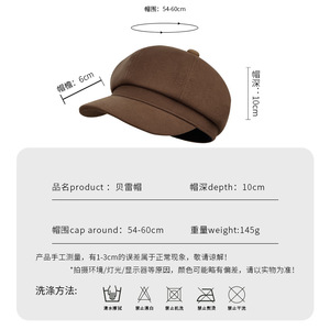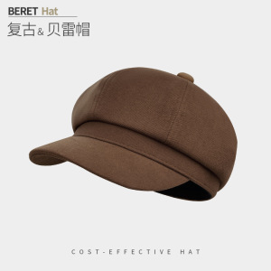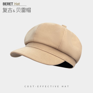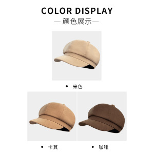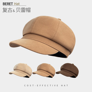 鸭舌八角帽子女秋冬韩版复古光板报童帽显脸小时尚百搭画家贝雷帽