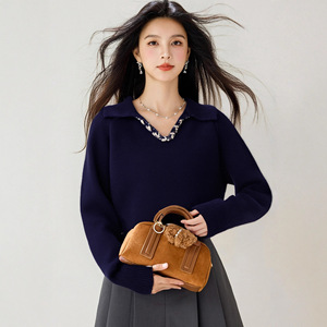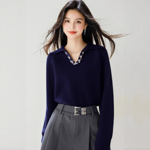 设计感亮片v领套头毛衣女2025秋冬新款气质小香风针织衫长袖上衣