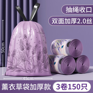 跨境免撕抽绳垃圾袋家用手提加大加厚厨房用大号实惠装塑料袋批发
