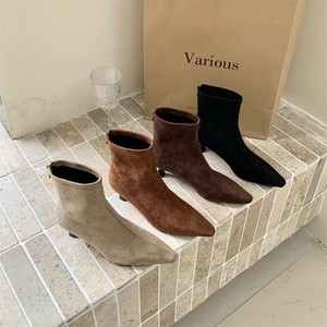 中跟尖头棕色绒面瘦瘦靴短靴女2025新款秋季细跟气质法式小踝靴子