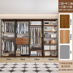 步入式衣帽架家用卧室带抽屉落地衣架服装店展示架双层开放式衣柜