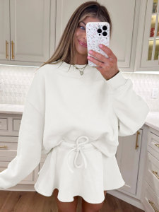 2025秋冬季新潮牌宽松卫衣女芭蕾风高腰系带半身裙高级感时尚套装