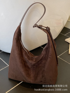 麂皮绒包包女式2025新款潮时尚高级感复古通勤单肩包大容量托特包
