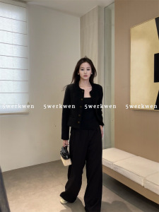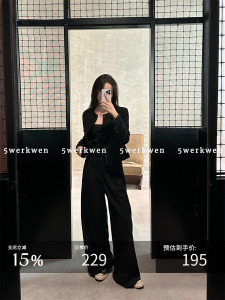 5werkwen 黑色高级感直筒西装裤春夏高腰显瘦拖地裤休闲阔腿长裤