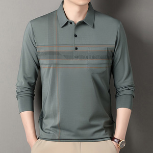 新款真口袋男士长袖POLO衫2025秋季休闲百搭中老年商务休闲t恤衫