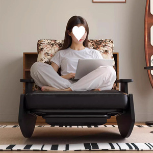 向日葵靠背+棕色皮革坐垫+伸缩脚踏