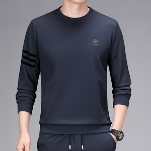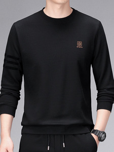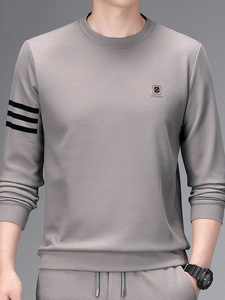跨境直播圆领男士薄款长袖卫衣春秋新款中青年套头百搭打底衫t恤