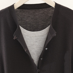 精纺羊毛2025新款秋季MIU风假两件针织衫女复古显瘦圆领开衫外套
